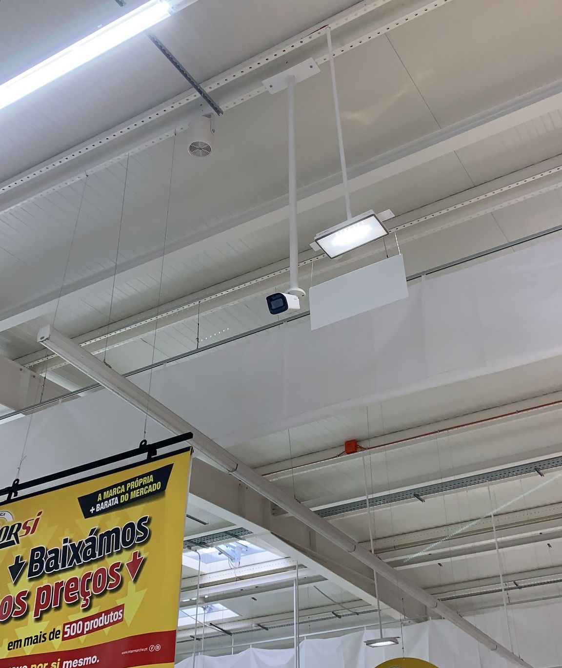 Instalação de sistema de vídeovigilância, sistema de som e etiquetas eletrónicas.